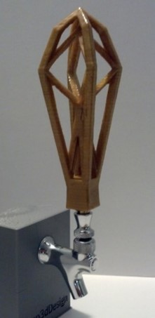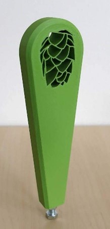 - De handgreep moet functioneel zijn. Het handvat moet op de tap te schroeven zijn met M8 schroefdraad. Neem dus in je ontwerp intern schroefdraad mee, of ontwerp een gat van minimaal 18mm diep voor draadtappen. Tussen de biertaps is 8 cm ruimte, dus maak je handle niet breder dan dat.
